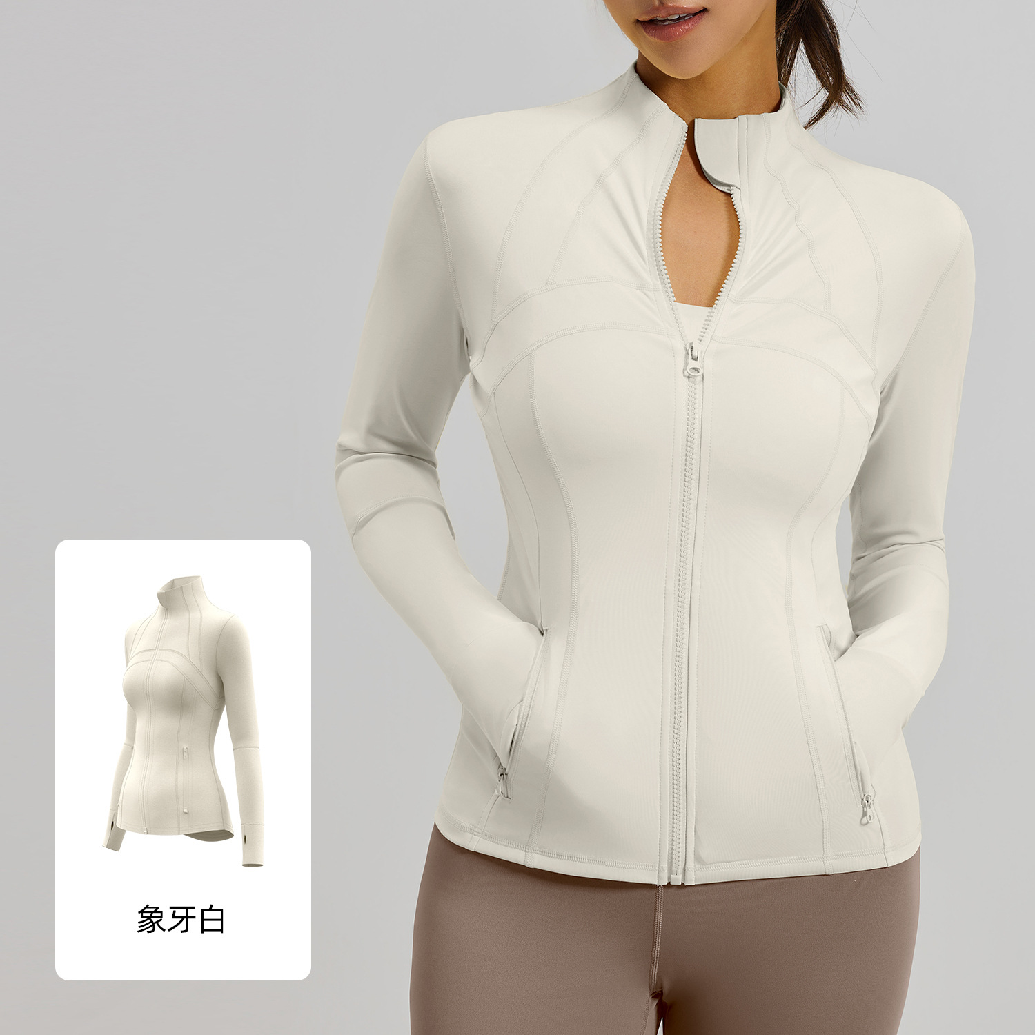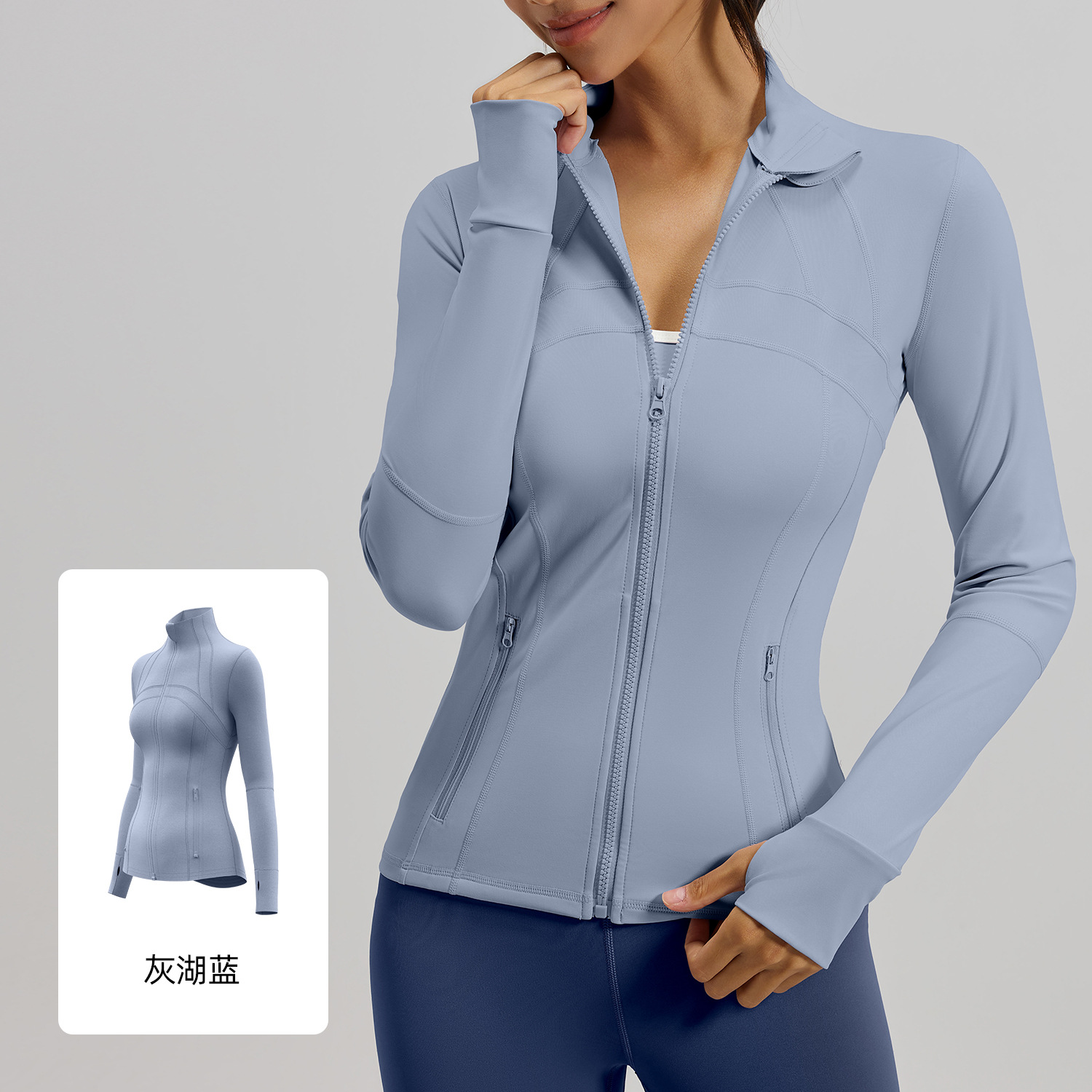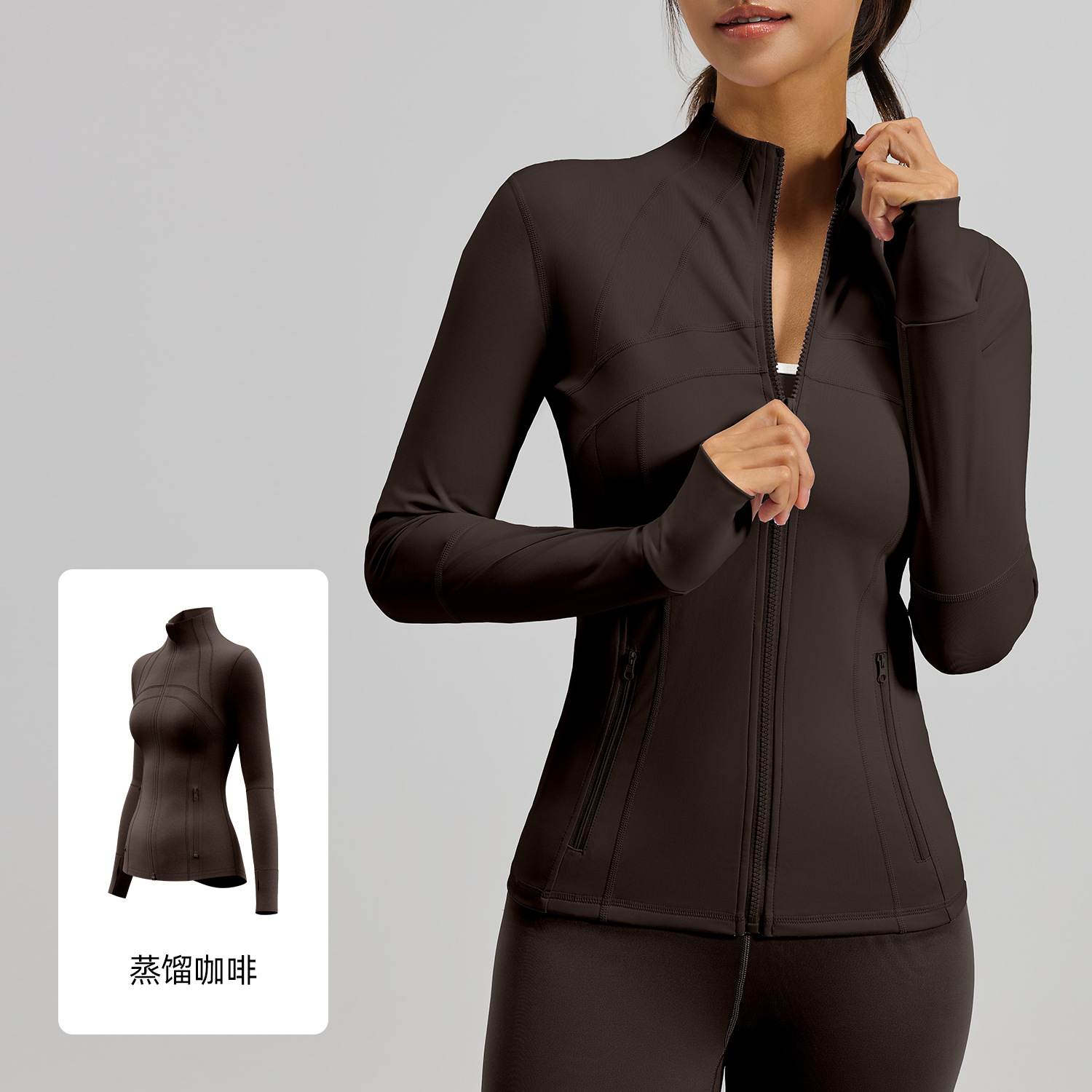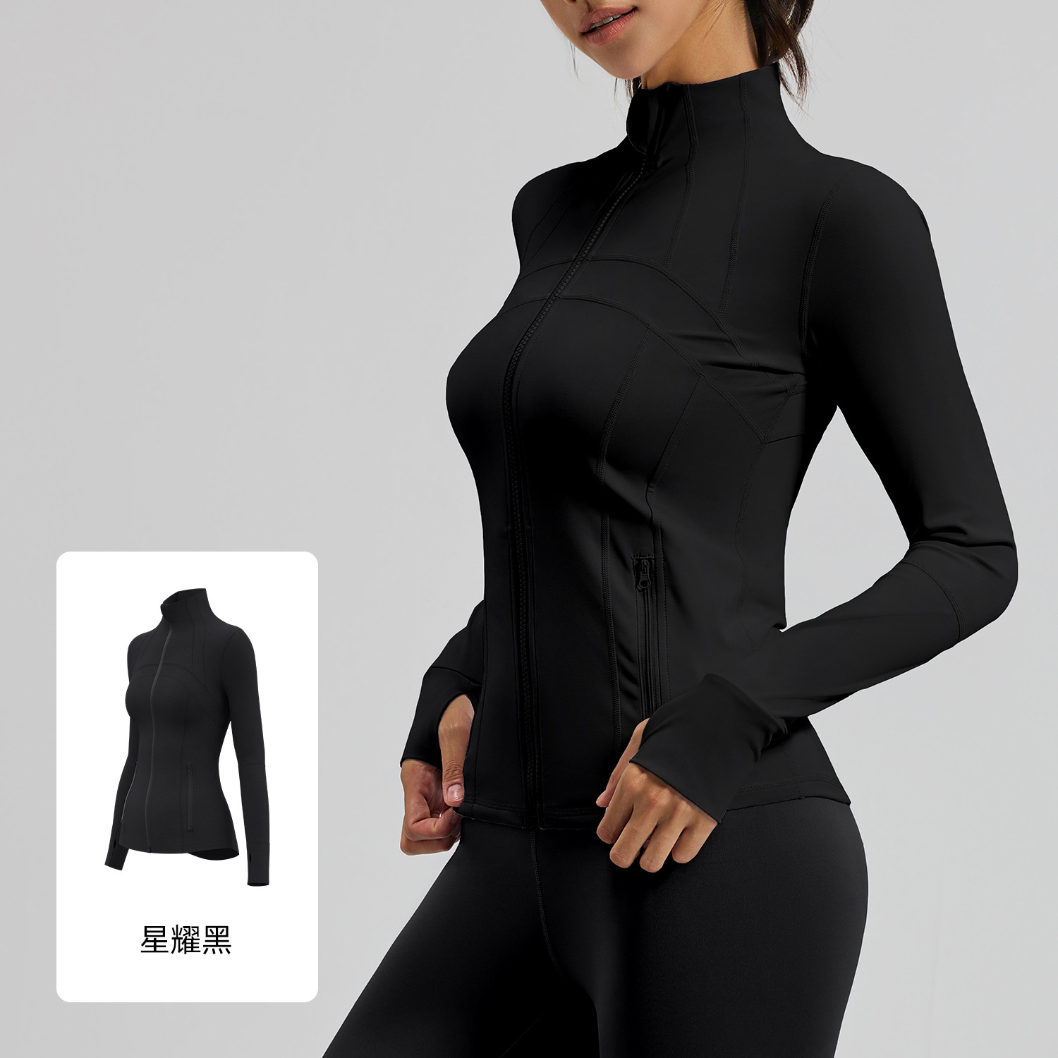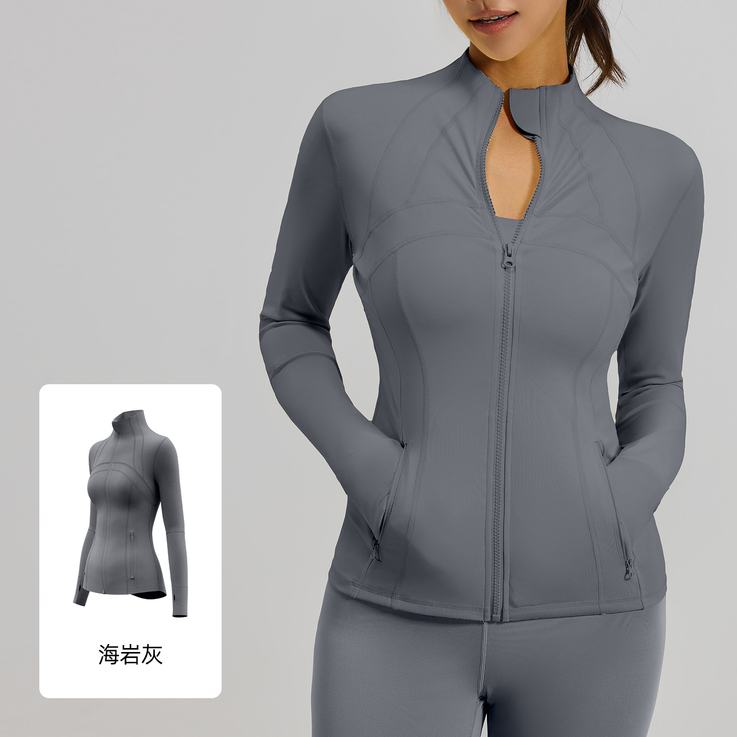 聚衣堂蜜桃运动外套女拼接立领遮肉口袋身显瘦健身瑜伽上衣