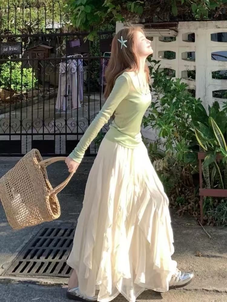 白色蛋糕裙女春夏新款高腰显瘦韩系温柔风多层蕾丝a字蓬蓬长裙子
