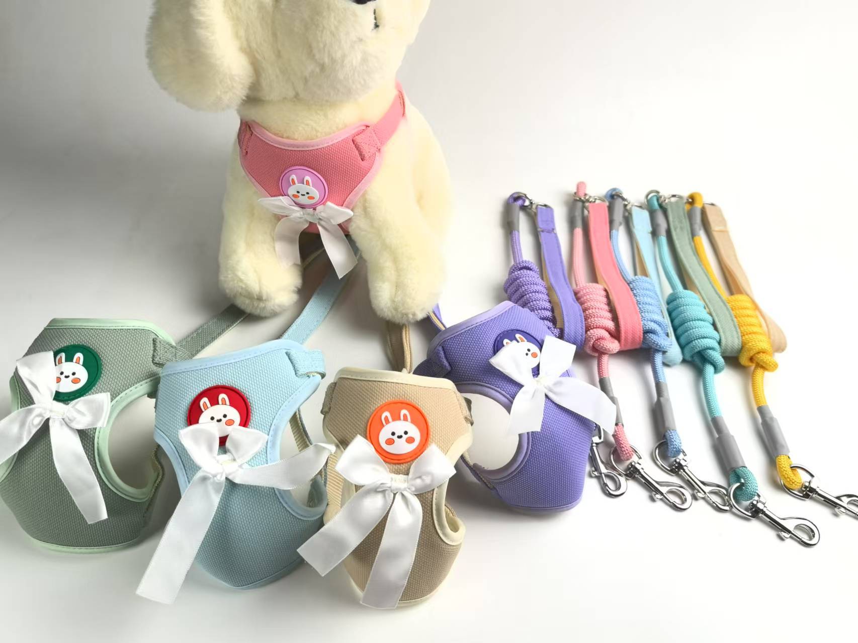 新款宠物牵引绳可调节背心式立体蝴蝶结遛狗绳溜猫绳宠物用品