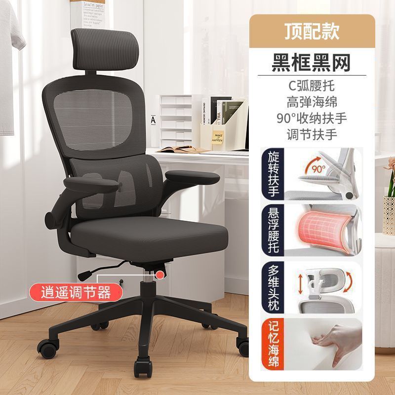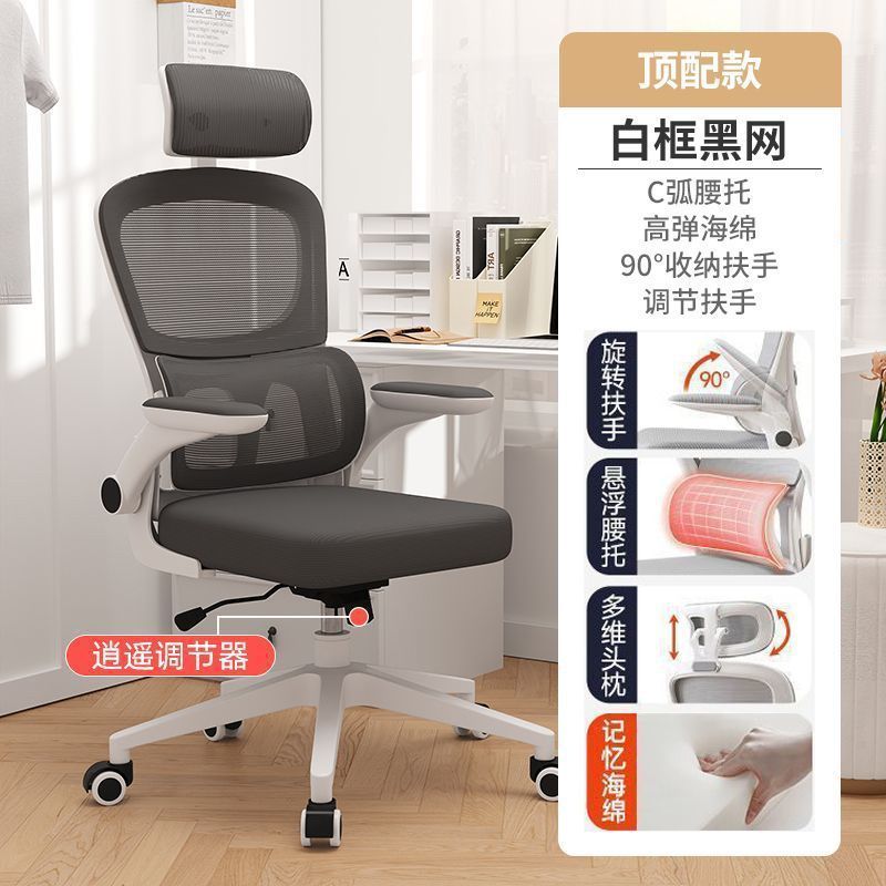 电脑椅家用卧室人体工学椅舒适办公椅学习护腰可升降旋转电竞椅子