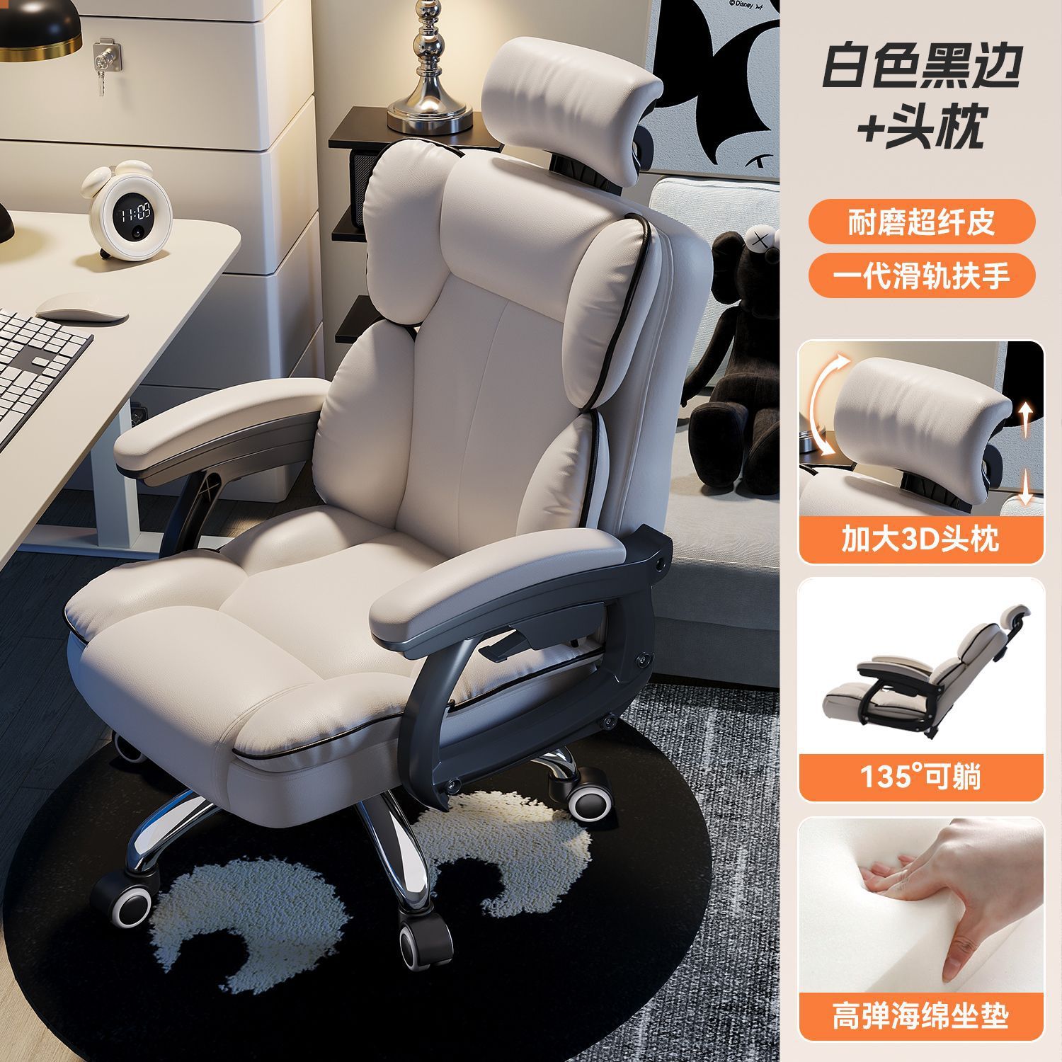 电脑椅家用人体工学电竞椅子久坐舒服宿舍可躺沙发靠背椅办公座椅