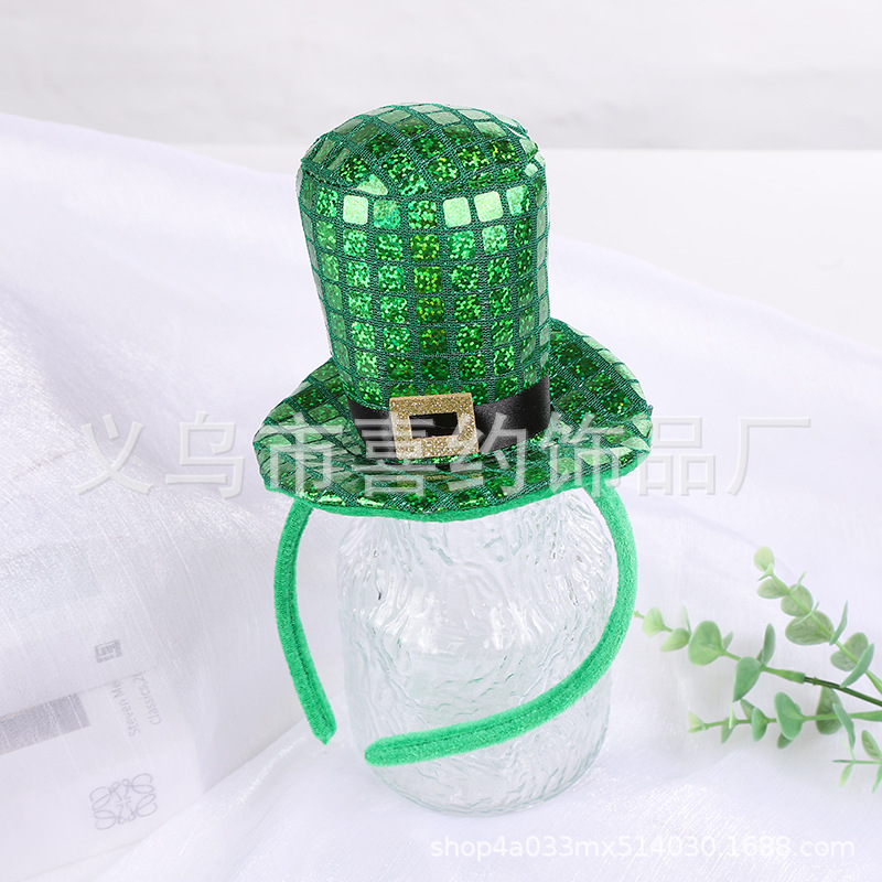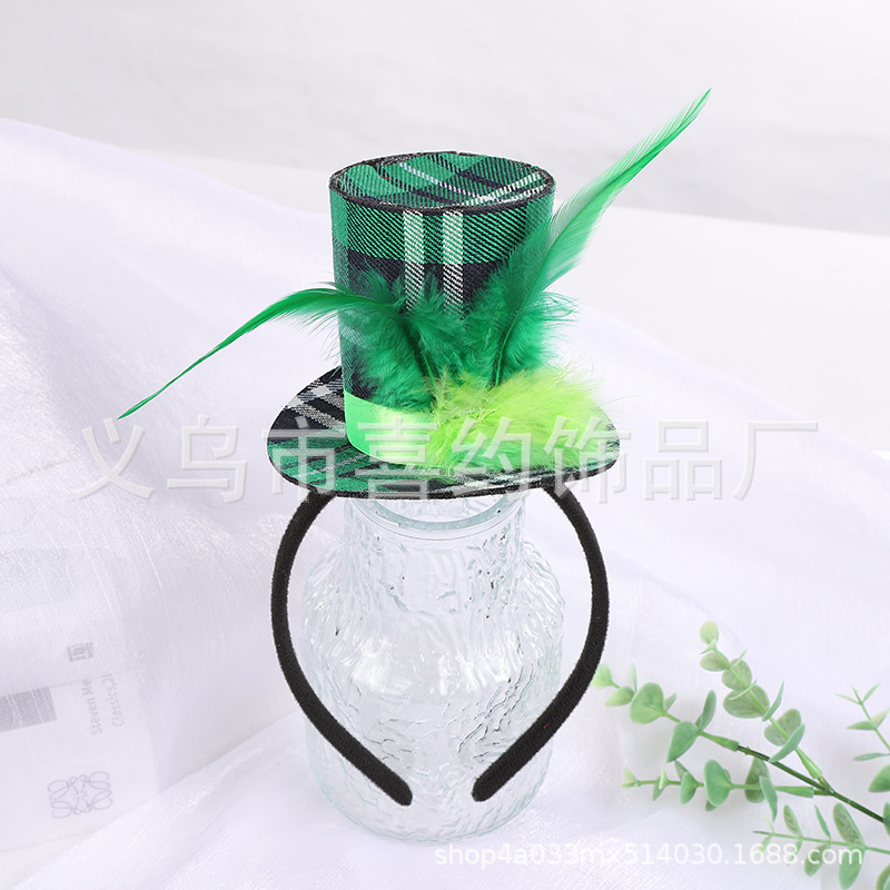 爱尔兰节绿色帽子发箍圣帕特里克节头箍派对绿色羽毛亮片帽子头饰