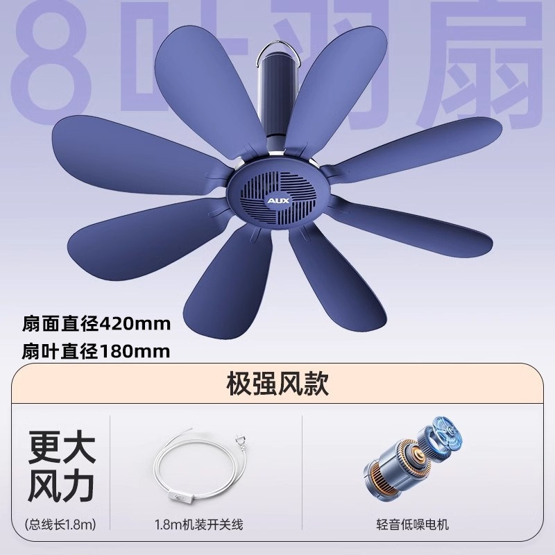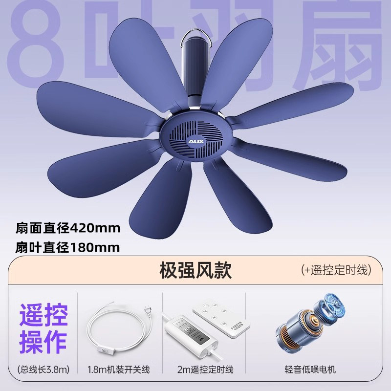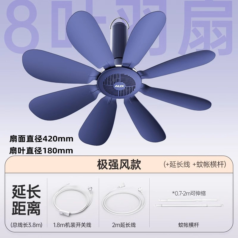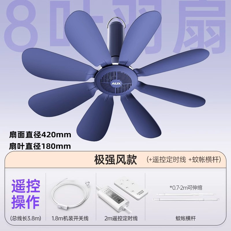 藏青色【极强风8叶款】+遥控线+蚊帐横杆