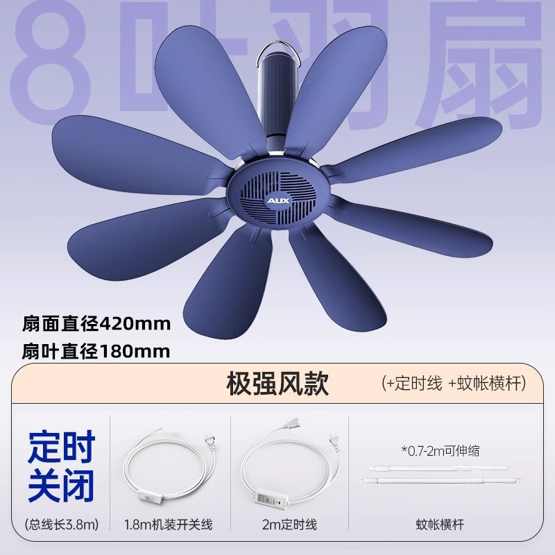 藏青色【极强风8叶款】+定时线+蚊帐横杆