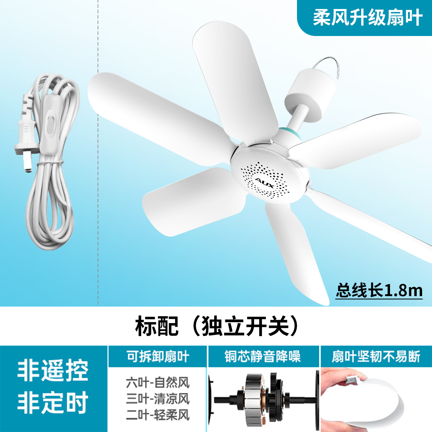 白色【轻音劲风6叶升级款】纯铜电机