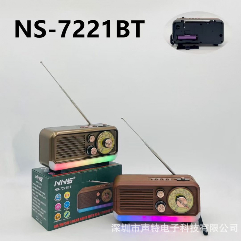 NS-7221BT怀旧摆件高颜值复古木质蓝牙音箱带RGB灯三波段收音机