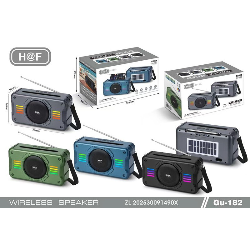 Gu-182RGB灯调频太阳能蓝牙音箱25W户外手提低音炮迷你音响收音机