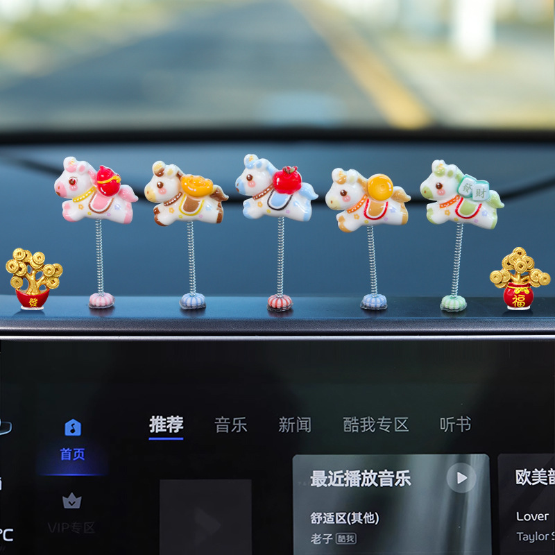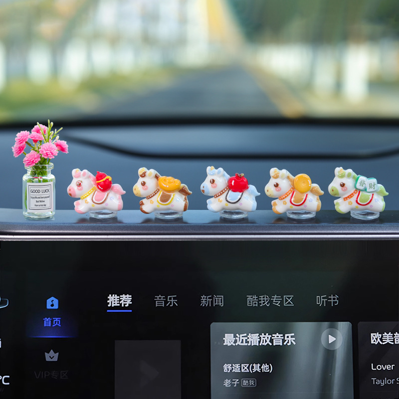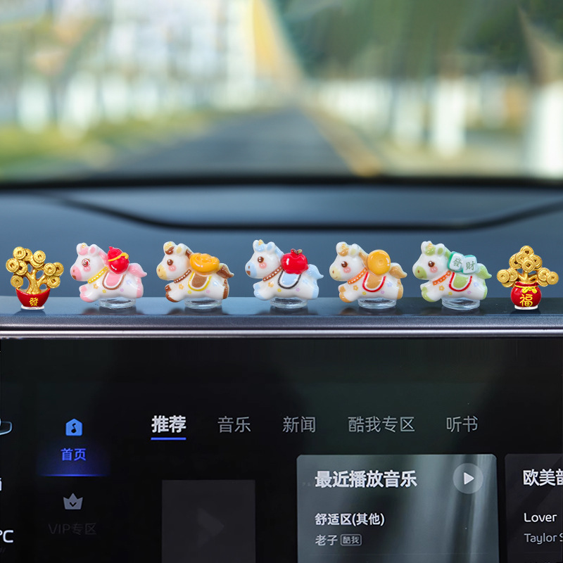 2026新款车载马年生肖迷你小摆件发财暴富小马汽车内中控台装饰品