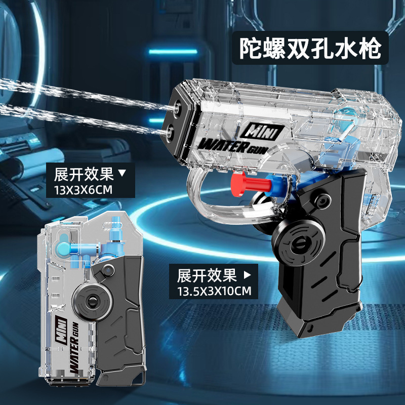 新款指尖陀螺双孔水枪夏季户外戏水双孔出水仿真水枪多人对战玩具