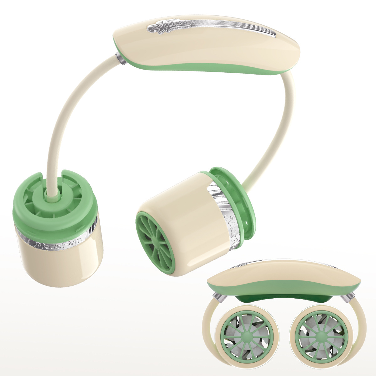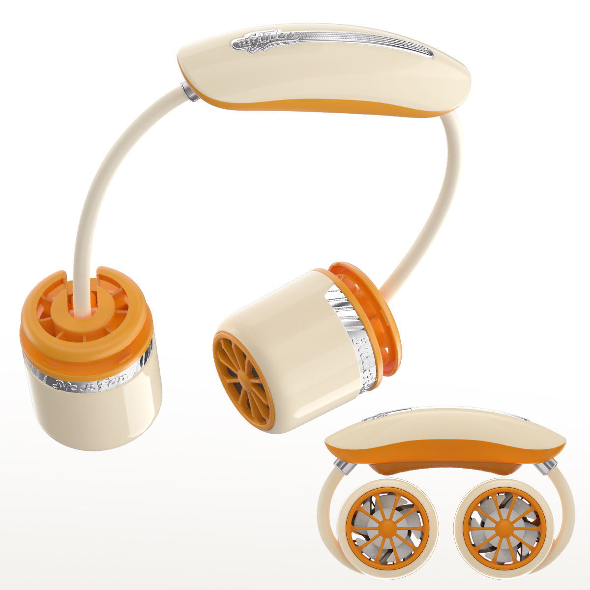 新款双涡轮运动挂脖风扇USB充电折叠小风扇静音迷你户外便携风扇