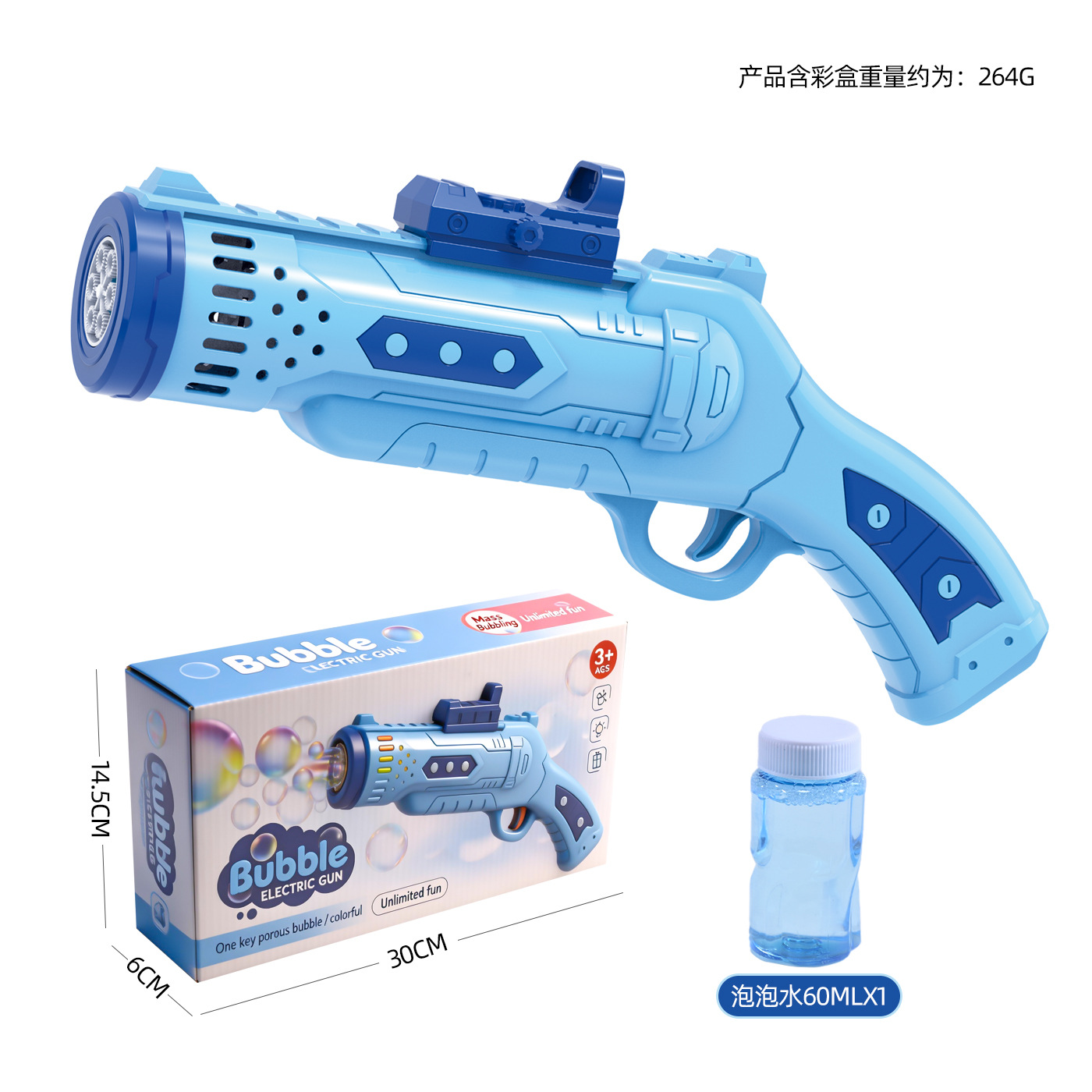 电动灯光泡泡枪-蓝色(送1瓶水)