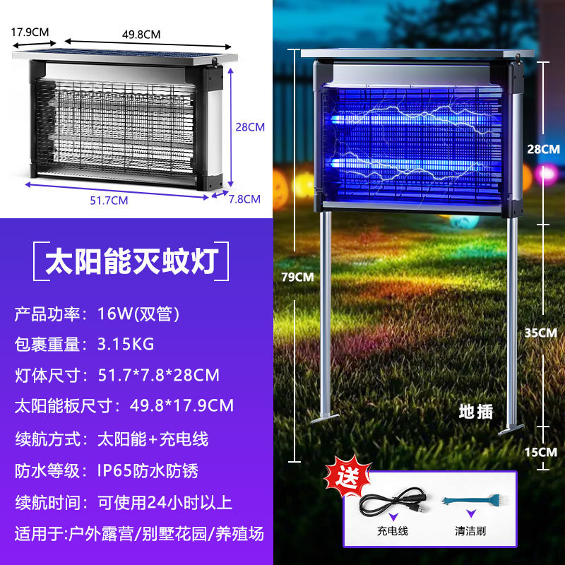 太阳能灭蚊灯户外诱蚊神器家用庭院花园防水杀虫灯电击式驱蚊蝇灯