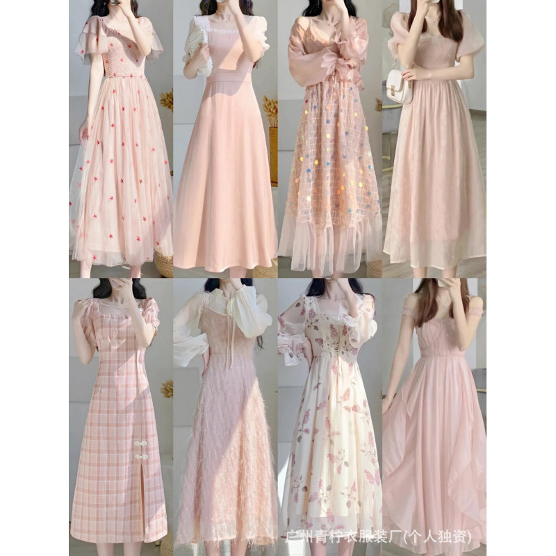 杭州四季青女装连衣裙2025夏新款法式仙气方领收腰奶甜初恋长裙子