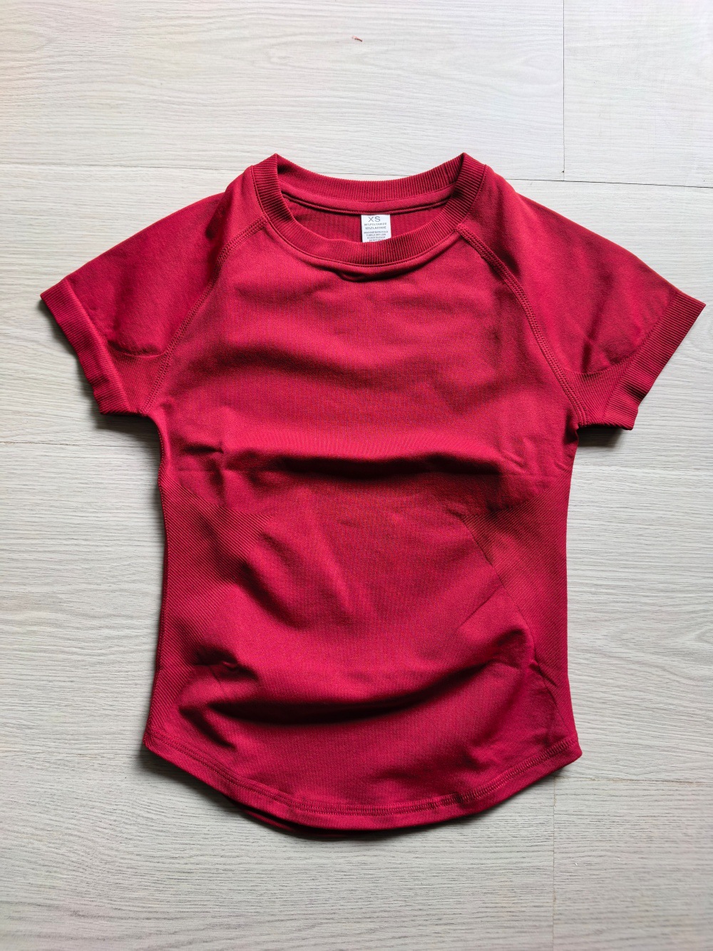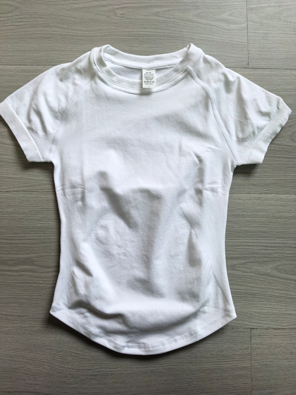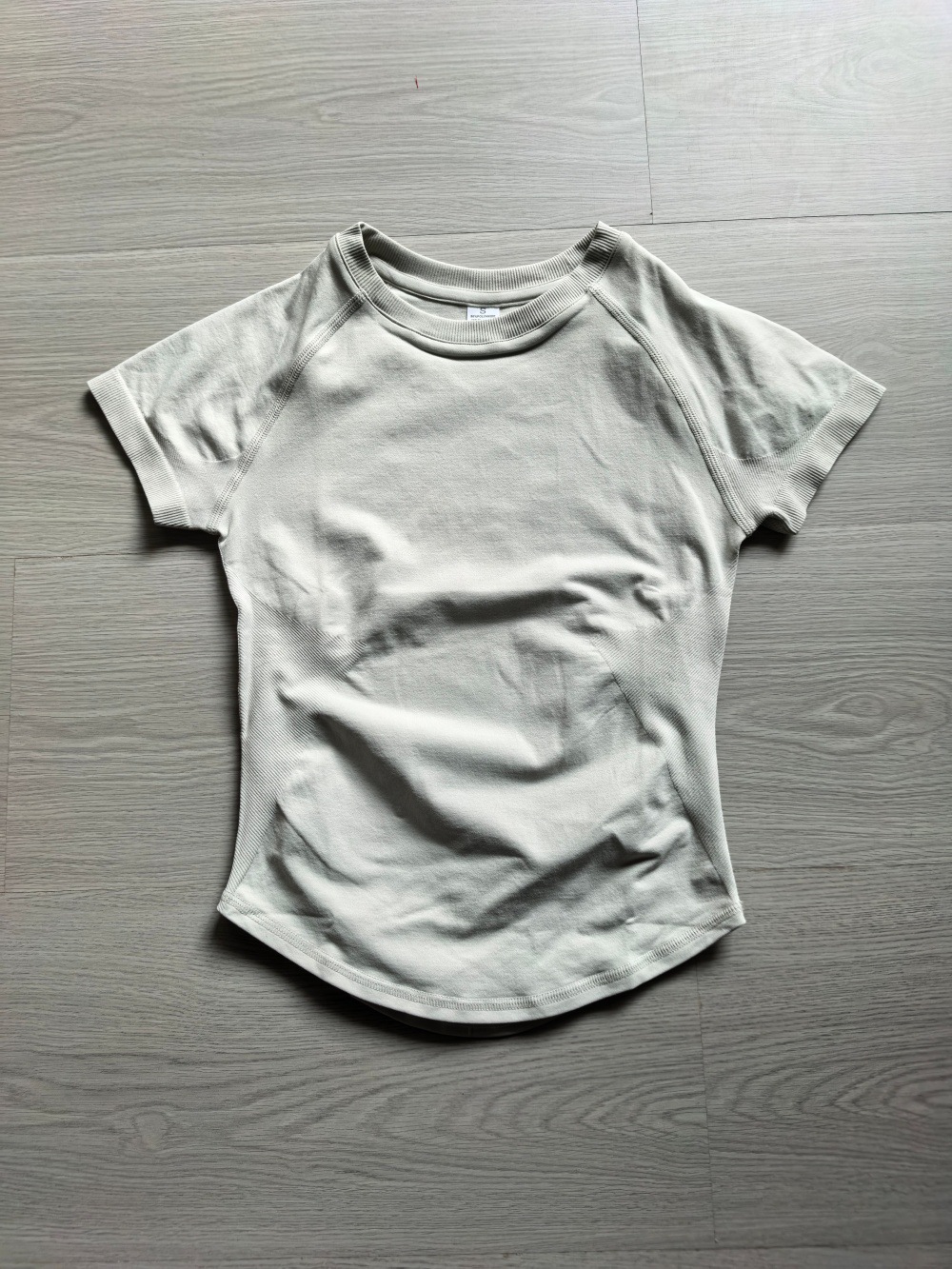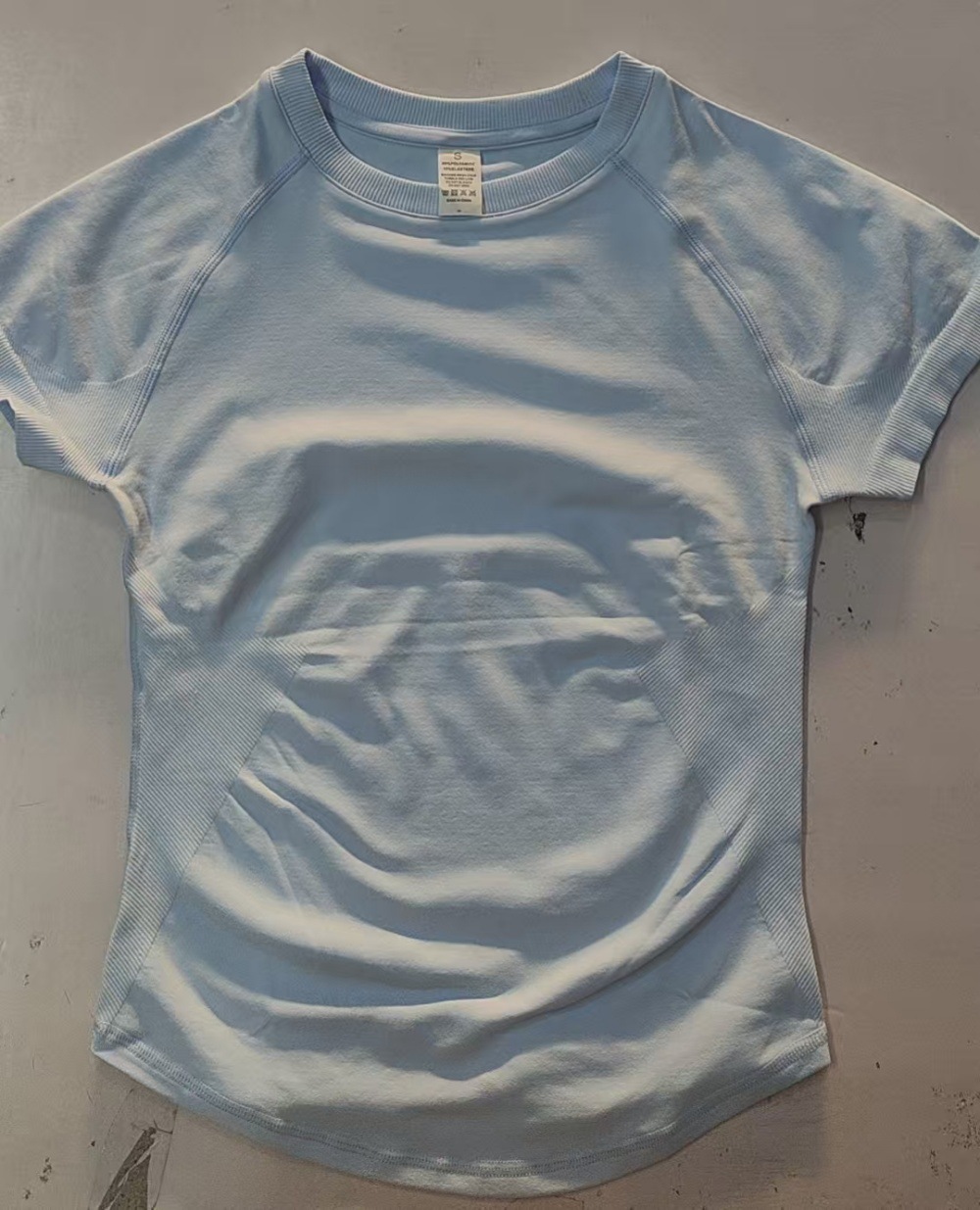 亚马逊全消光锦纶高弹吸湿排汗紧身无缝短袖健身T恤齐臀长短袖
