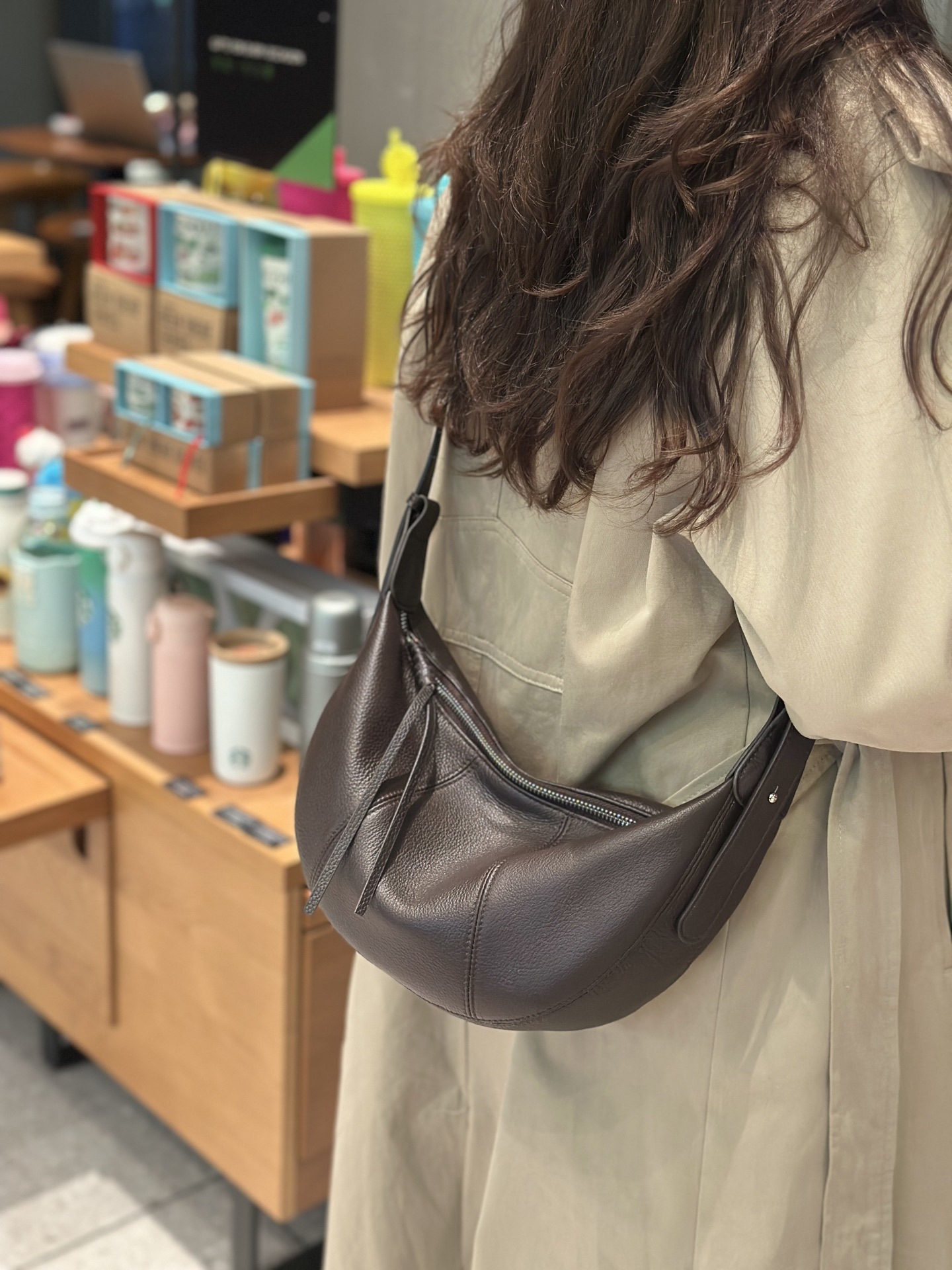 头层牛皮斜跨饺子包新款真皮小众单肩实用通勤自然摔纹牛皮月牙包