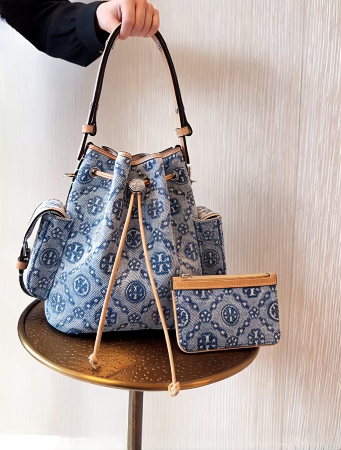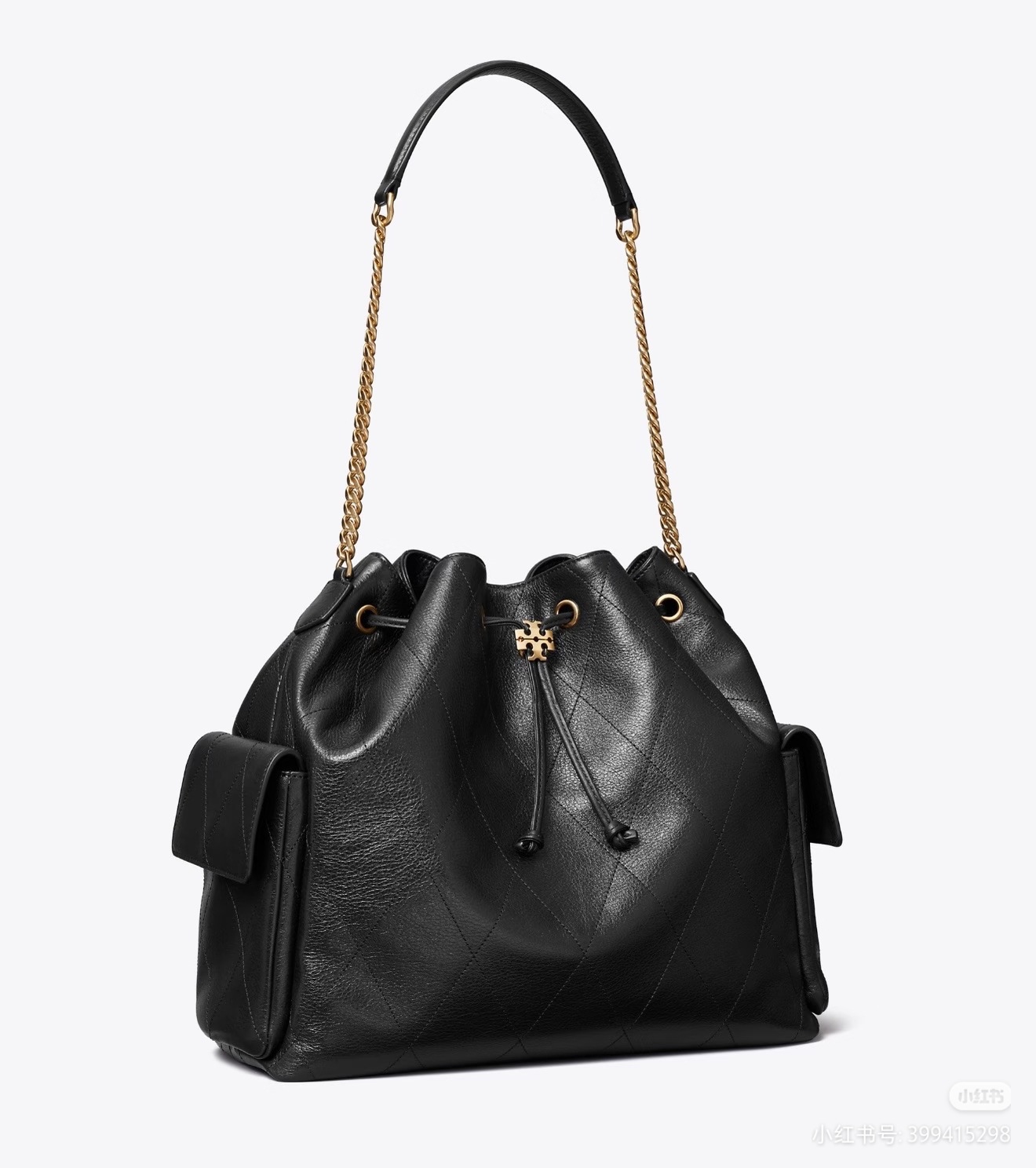 26TB黑金水桶轻奢新款牛皮链条单肩包时尚抽绳设计大容量托特