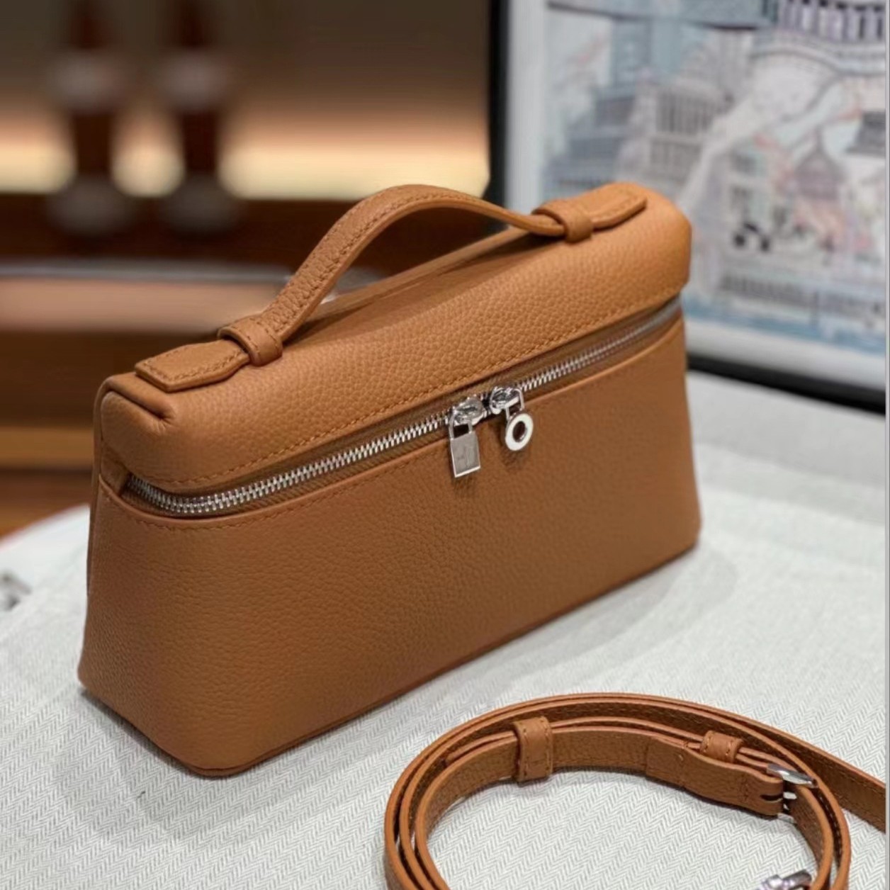 lp19饭盒包包斜挎包女原标lp27荔枝纹手提小方包高级感轻奢盒子包