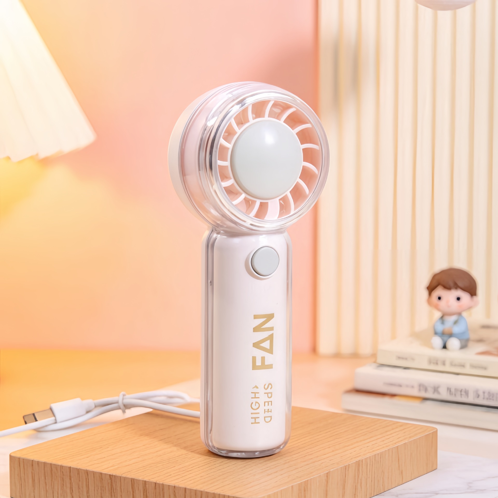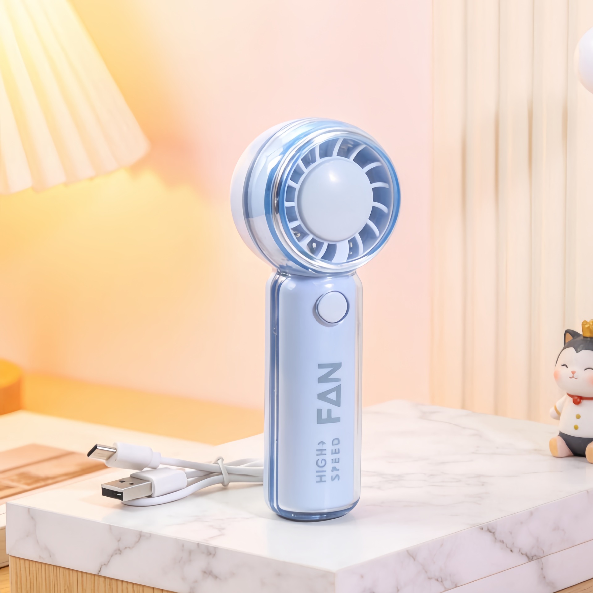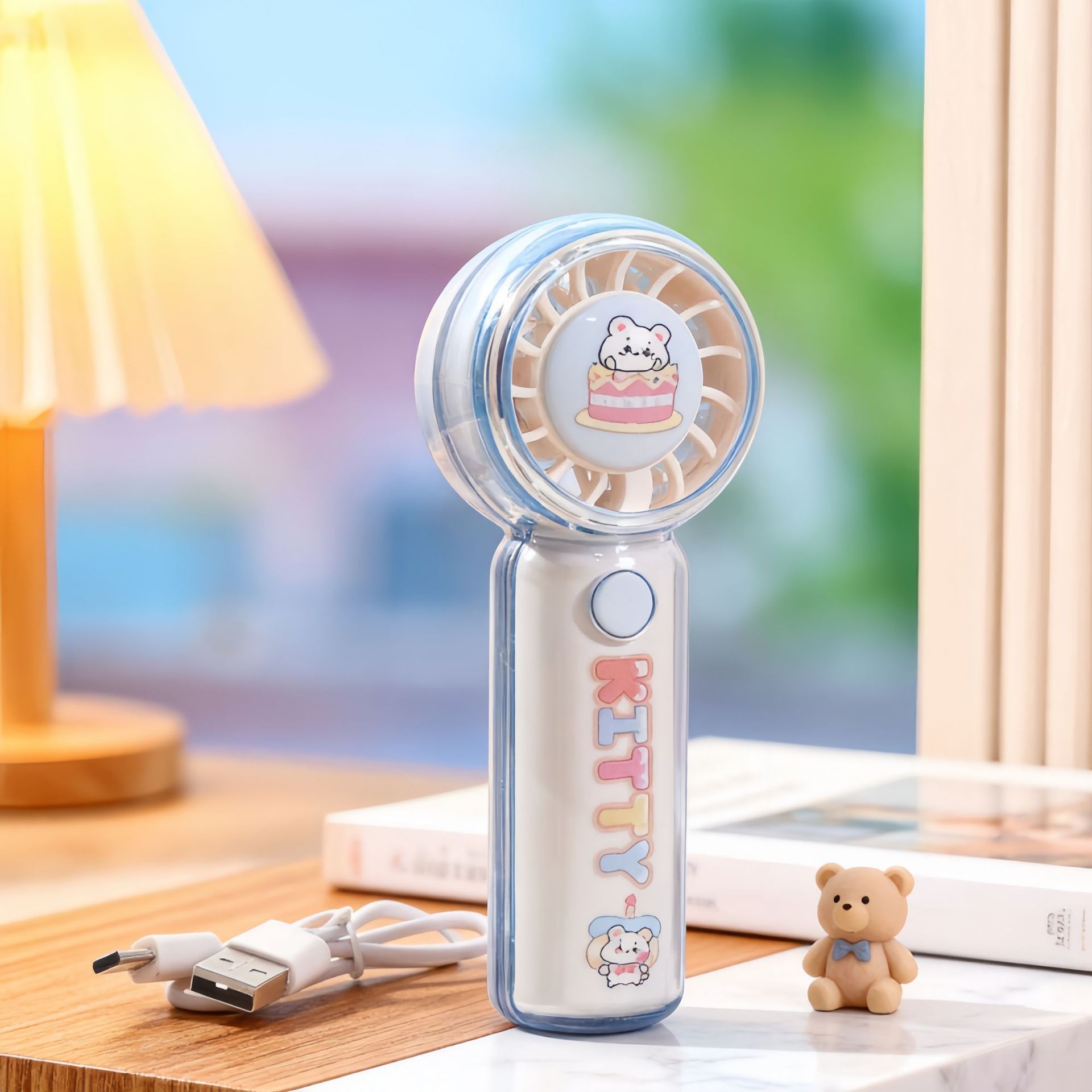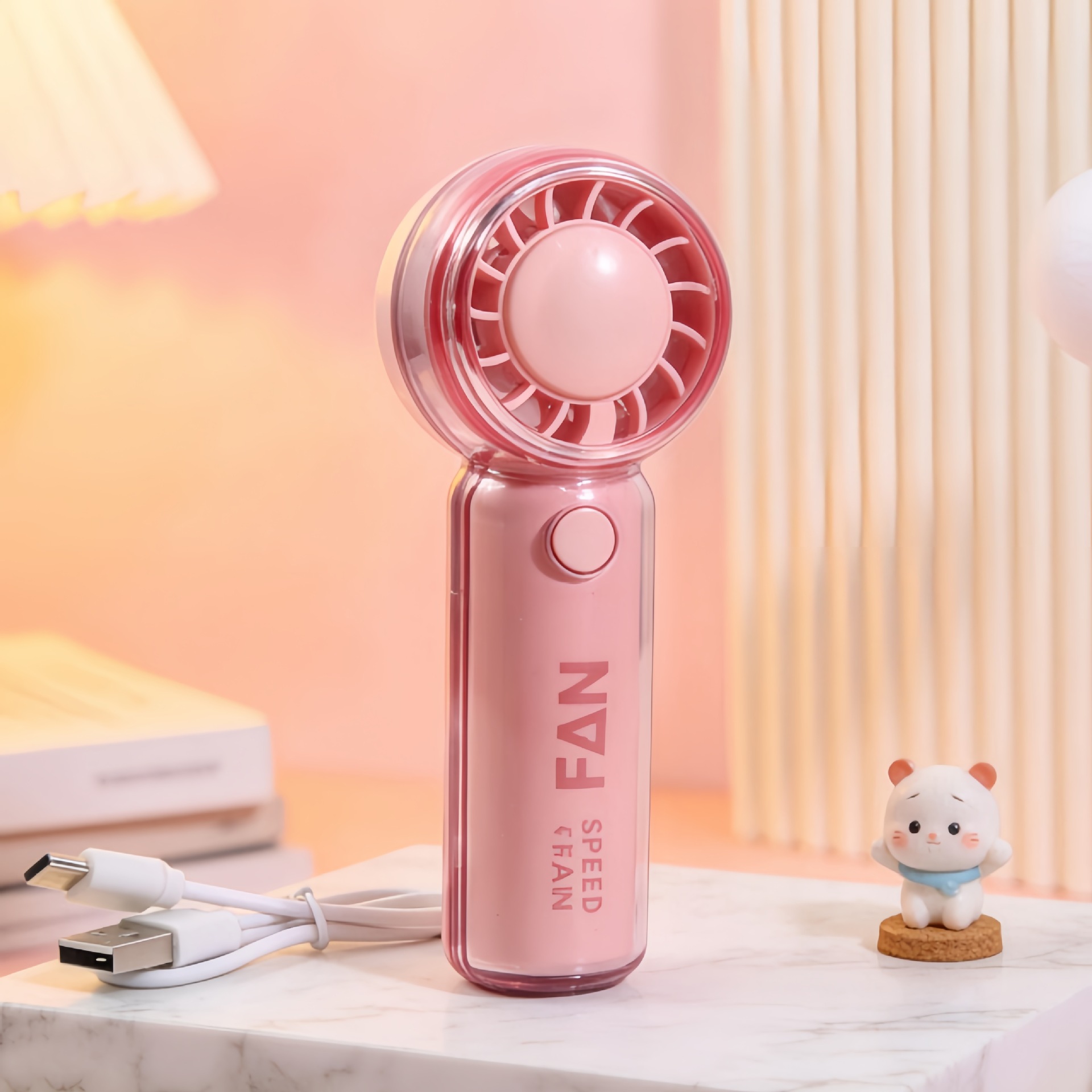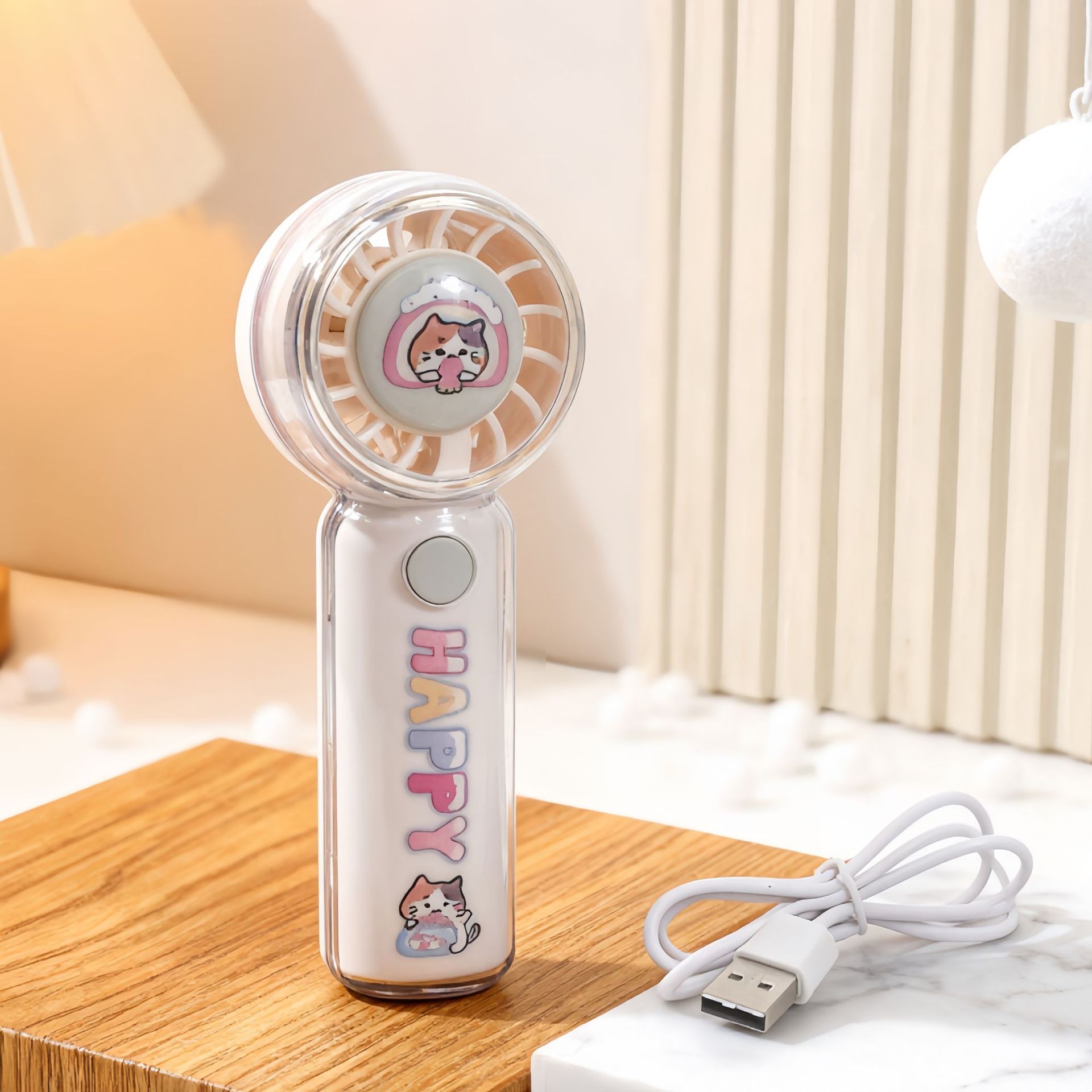 新款户外迷你手持卡通提绳风扇三档调速usb充电便携口袋风扇批发