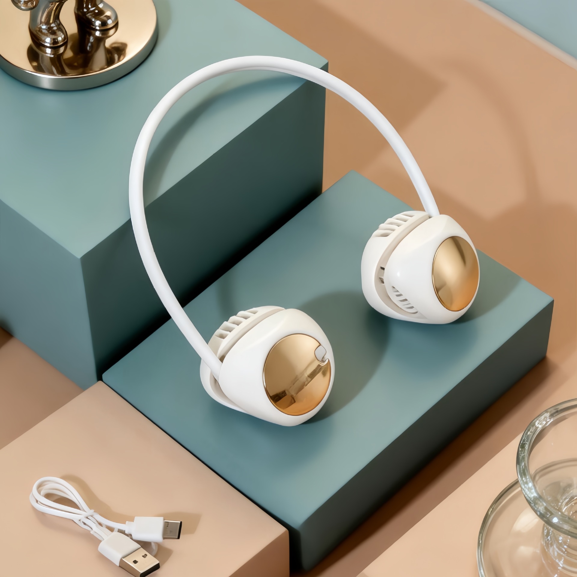 户外运动随身三档调速降温挂脖风扇收纳便携usb充电无叶风扇批发