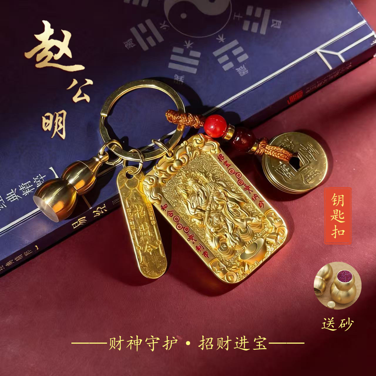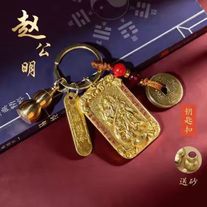 赵公明山鬼八卦令牌四件套钥匙扣佛牌挂件车五路财神挂件厂家直发