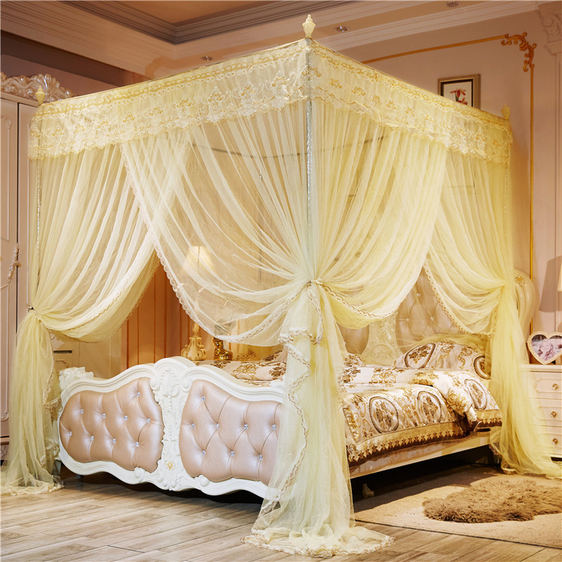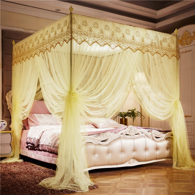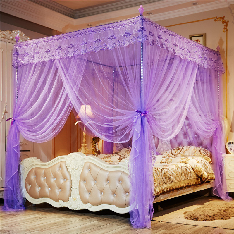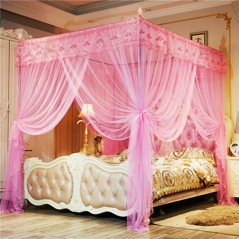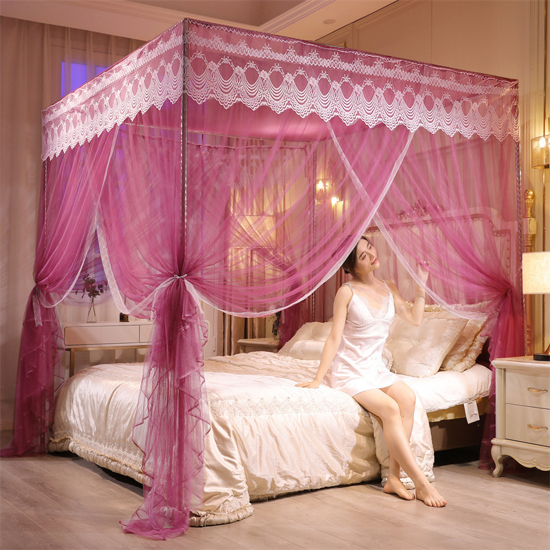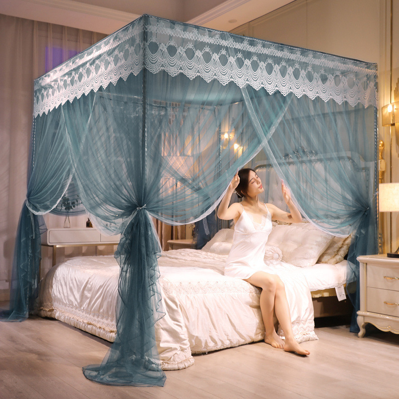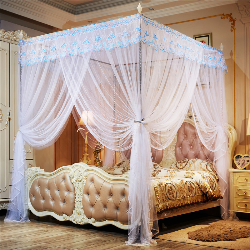 三开门宫廷蚊帐家用1米8床公主风落地纹帐批发加密双人文帐带支架