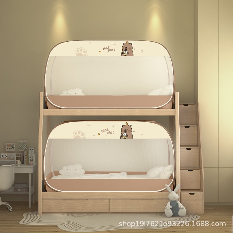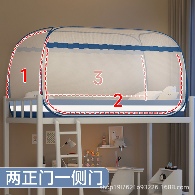 蚊帐学生宿舍上下铺90cm有底免安装蒙古包单人子母床家用1.5米1.2