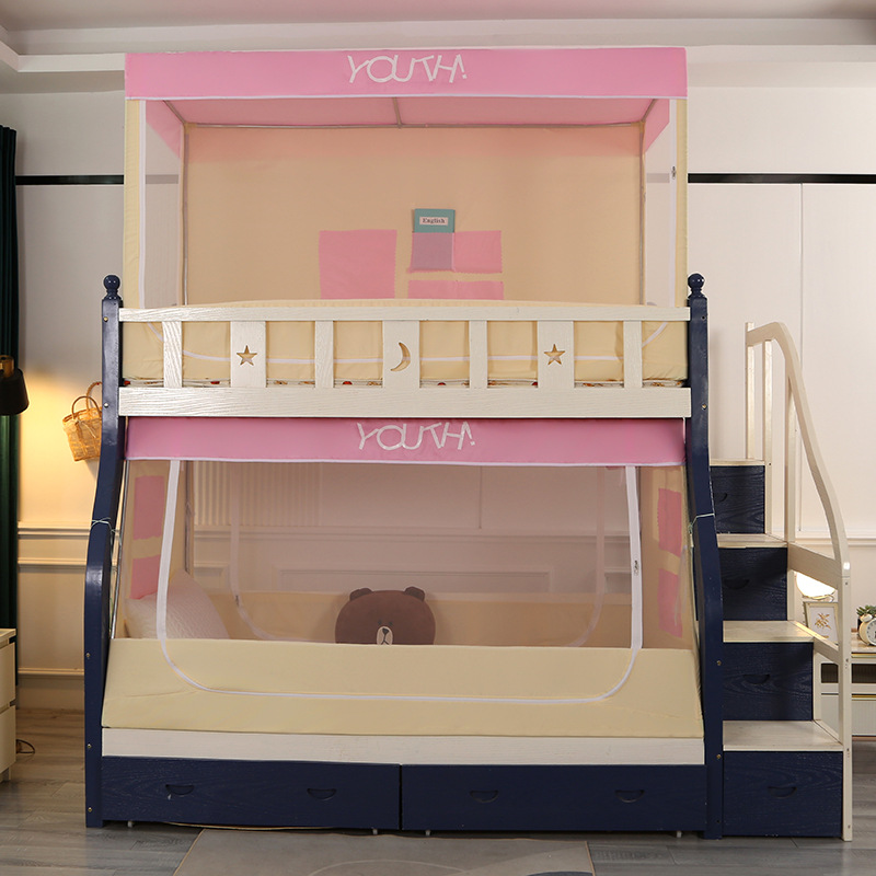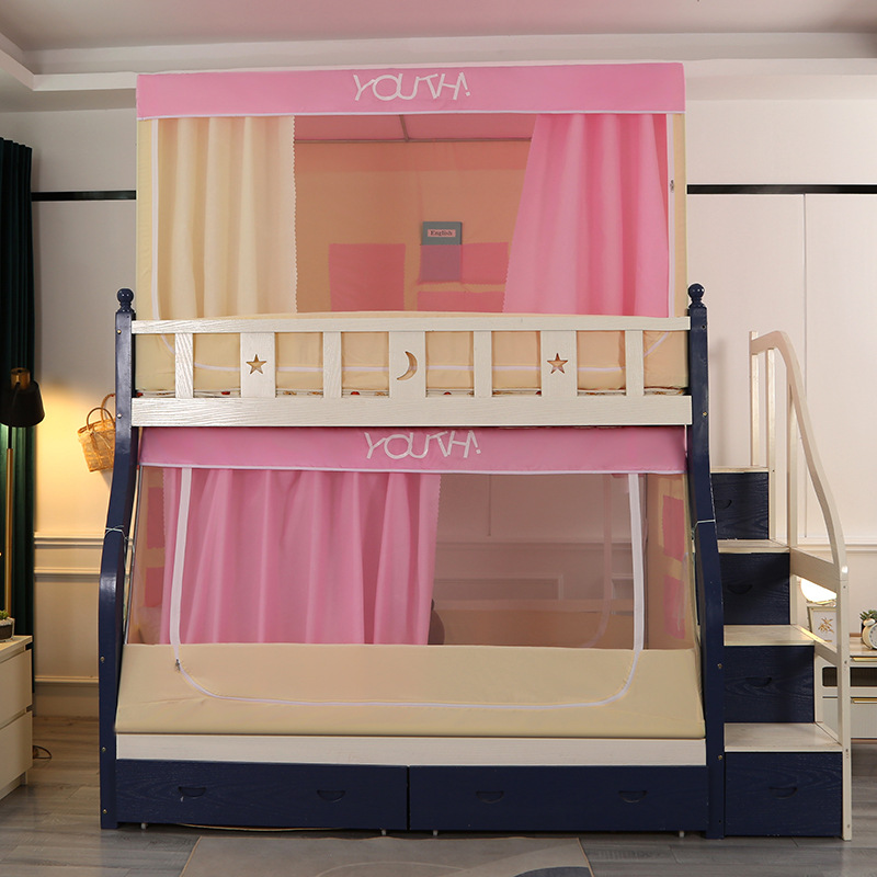 子母床蚊帐下铺专用梯形小屋蚊帐家用上下床宿舍床帘遮光上铺蚊帐
