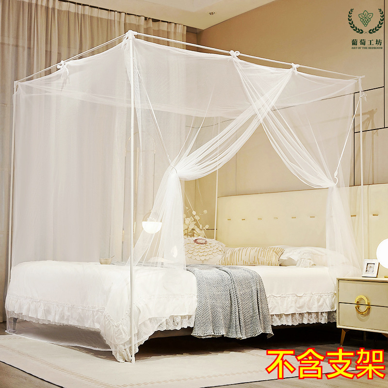 加密防蚊老式家用蚊帐卧室双人床传统方顶帐篷单开门带绑绳白蚊帐