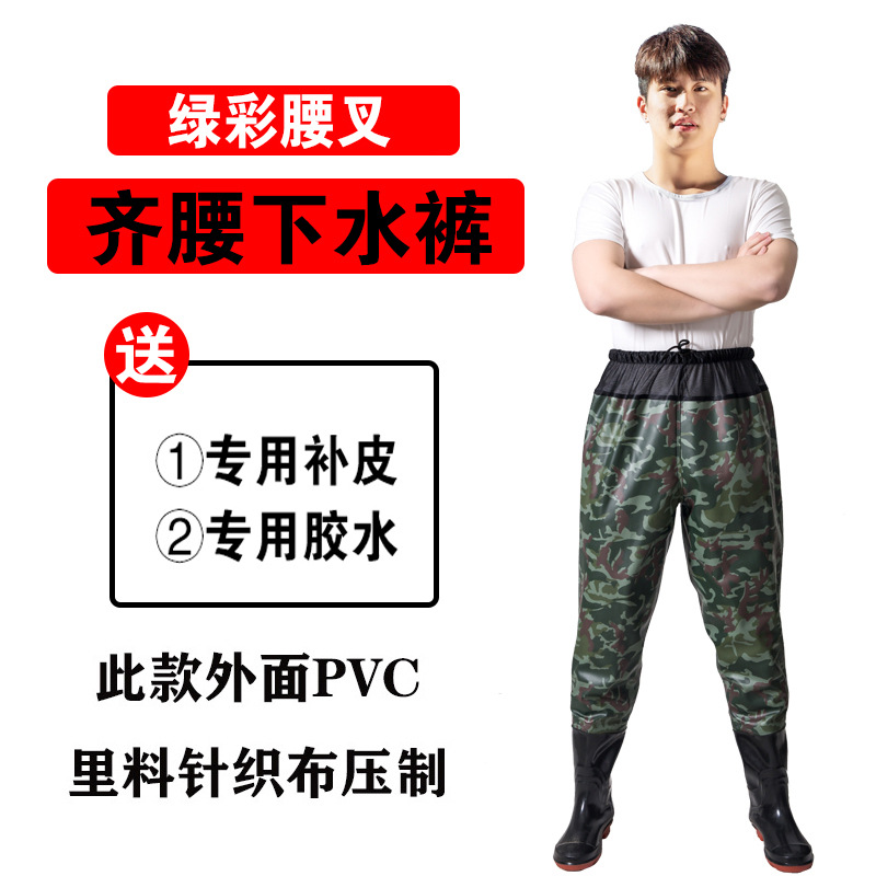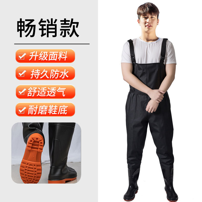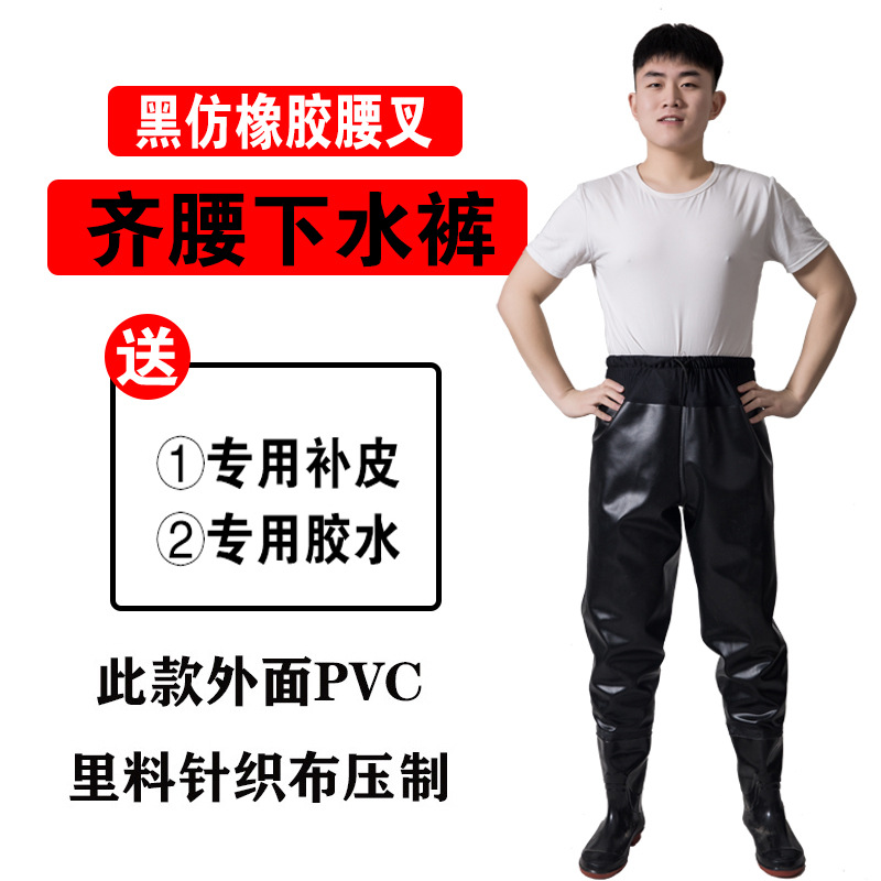 加厚半身下水裤防水裤带雨鞋皮叉抓鱼衣服雨裤