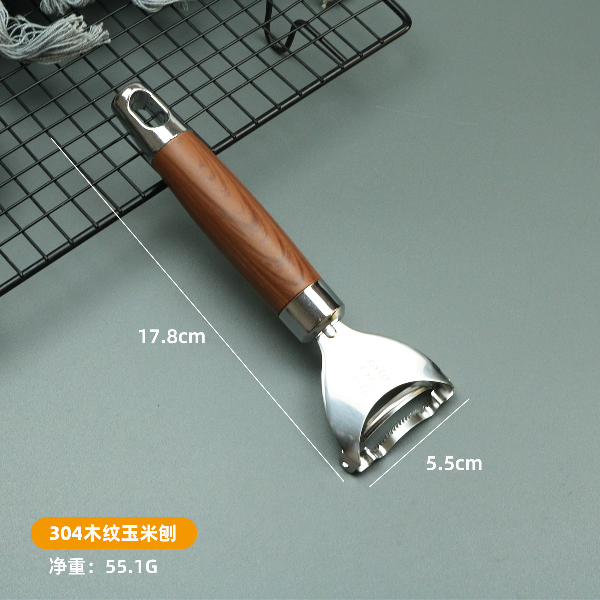 厨房小工具家用木柄瓜刨削皮刀玉米刨取芯器提盘器304不锈钢