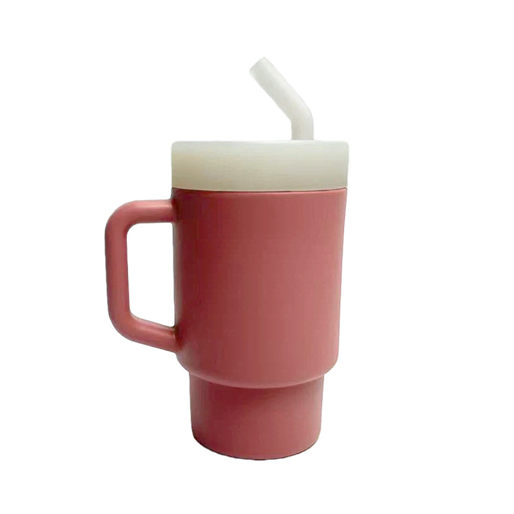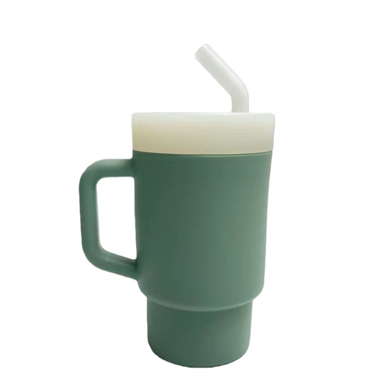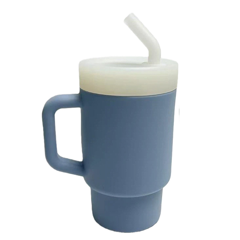 跨境新品硅胶杯儿童学饮杯食品级喝水杯带防漏儿童吸管杯冰霸杯